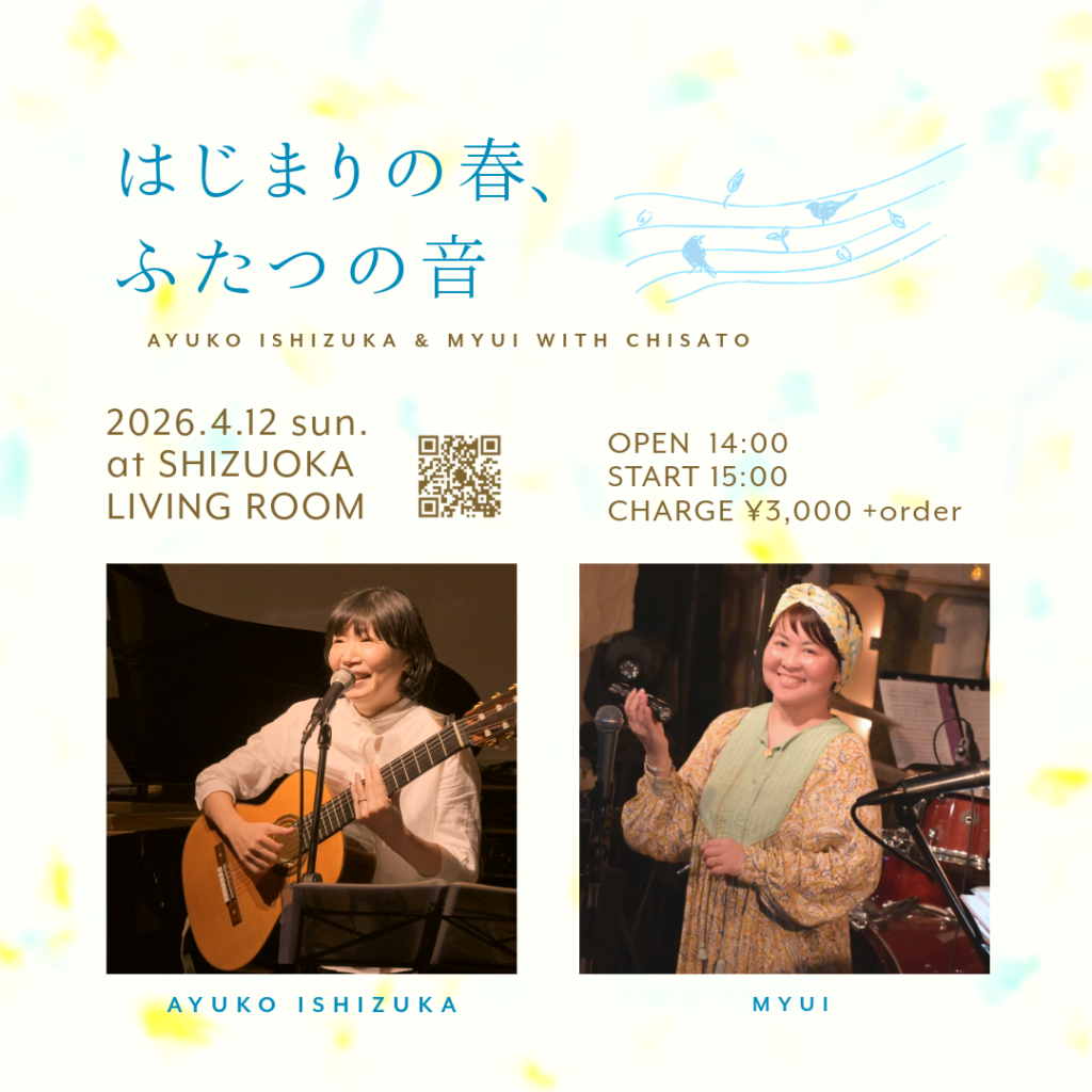 Myuiが東京時代から長年交流しているご縁で、久しぶりに一緒にジョイントライブをすることになりました。石塚明由子さんは日々の暮らしを大切に、人とのつながりや想いを音楽に表現されています。